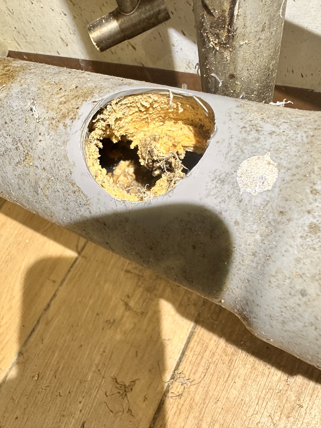 Root Cause: Hardened deposits on pipe wall (grease saponification, mineral buildup, long-term adhesion)