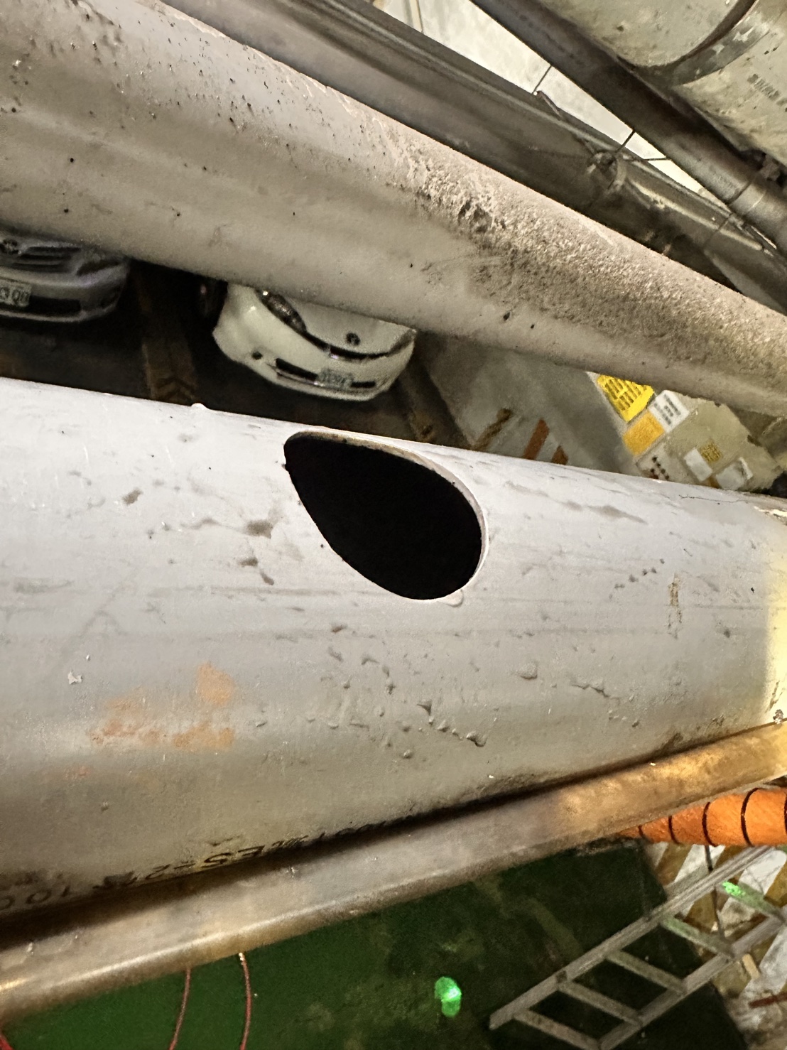 堵塞物特徵: 這類主幹堵塞多為硬化沉積,外觀呈片狀/塊狀, 可能混合油脂皂化、粉塵泥砂、結晶物與長期附著物。